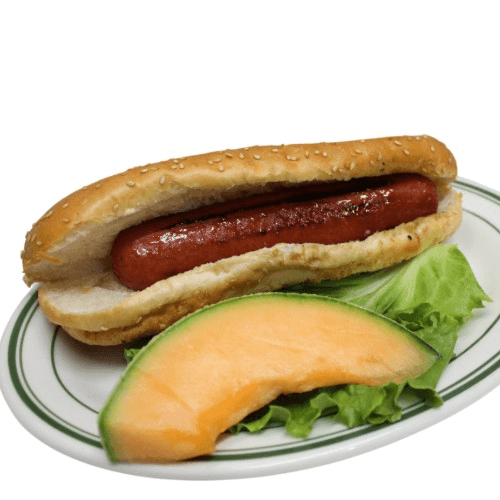 Cheesy Bavarian sausage link served on bolio bread with grilled onions and bell peppers